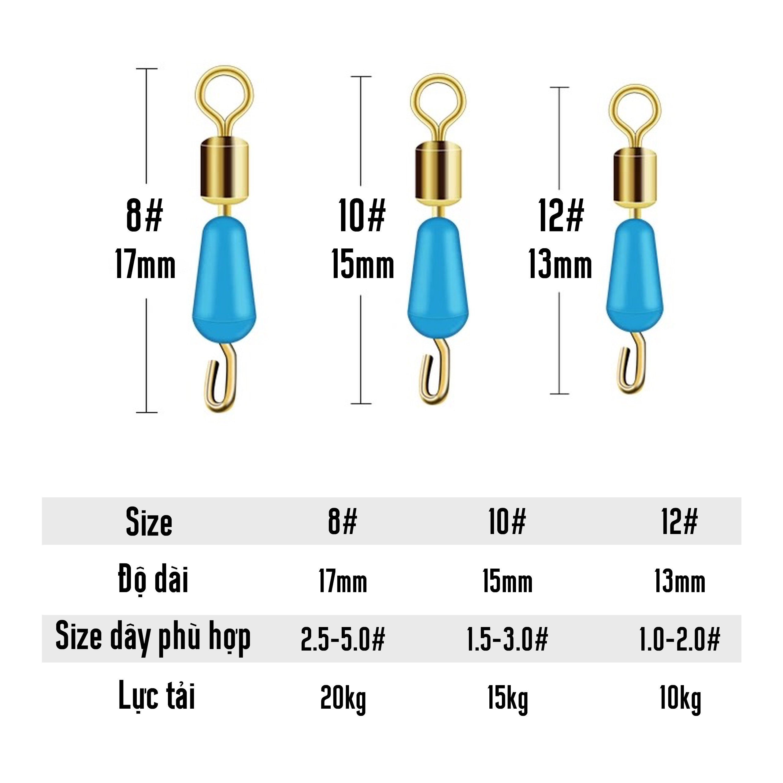 •Khóa linh chất liệu hợp kim mạ màu vàng trơn nhẵn ko làm tổn hại dây, lực kéo lớn, sử dụng cho nhiều cách câu cá khác nhau.